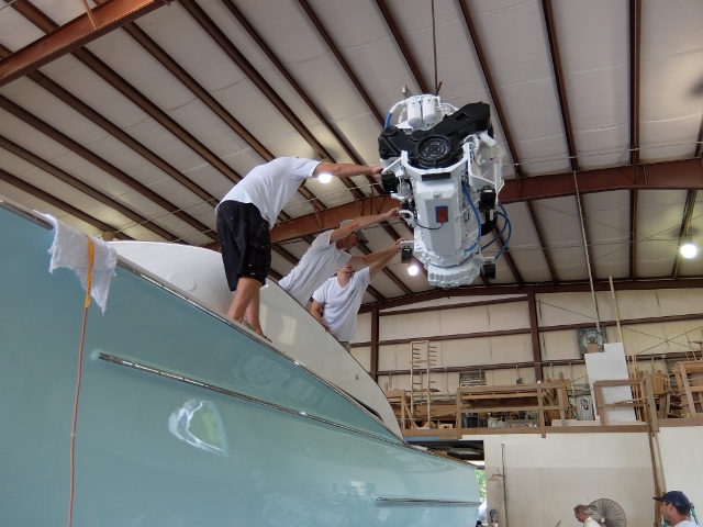 Been bitten by that "CAD" bug more than once, and on those 550's to! Here's a set of Cummins/5065A's going in, notice the big offset on the mount heights to accommodate different height stringers and the offset of the gear housing. It is NOT symmetrical to the crank centerline!!!