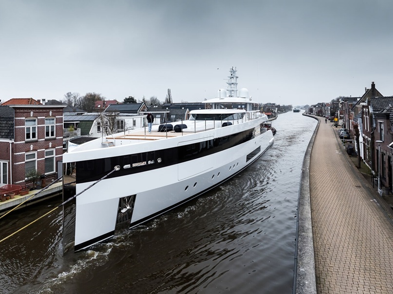 First superyacht launched for 2026 by Feadship is the 50-meter Project 717. The exterior is by De Voogt while the interior is by Marty Lowe. She has an arrangement for 10 guests in 5 cabins.