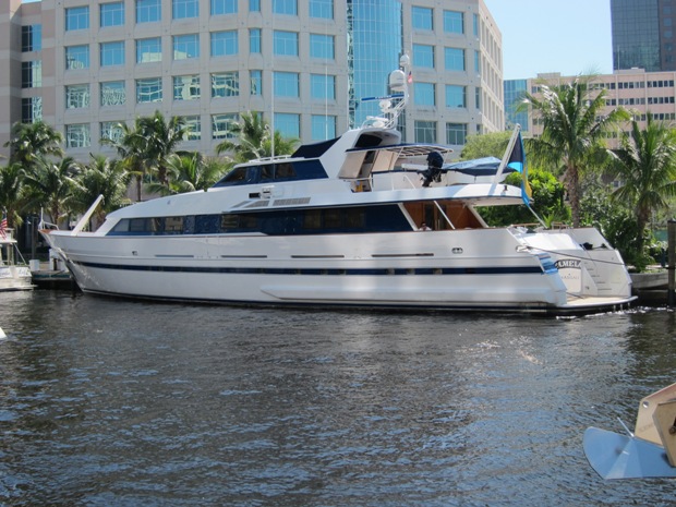 Yep, its the old Elegante that was once owned by the Tandy (Radio Shack) family. In the great yachting years (1980s) of Fort Lauderdale, it was tied up at the corner house just upstream from the Episcopal Church above Tarpon Bend. Both the yacht and house were exquisite back then.