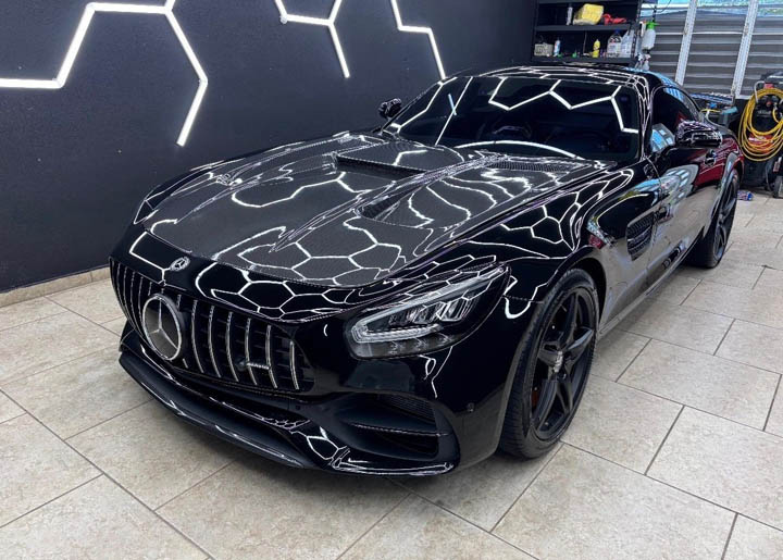 I thought grid lighting was used by commercial detailers to help find imperfections? It's an interesting effect for sure, but I'm not sure it compliments a car. Here's an AMG GT under grid lighting. Kind of detracts from the lines, I think?