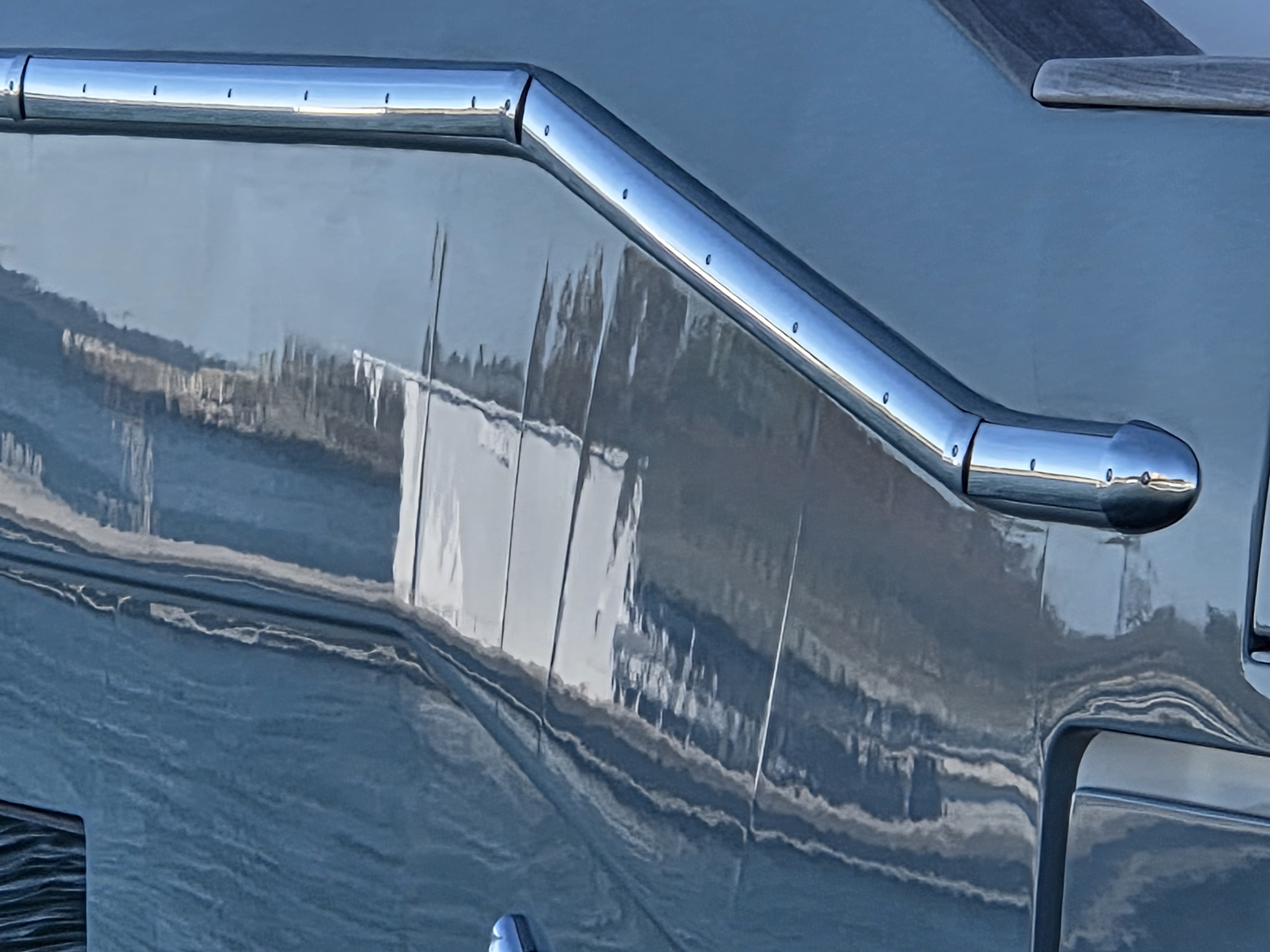 So we looked at a 58 Sirena in Maine and from afar it looked great, but as we got closer the sun hit it just right. Broker said that's no big deal can be fixed easily and its common. Is it? What is this? A hit from a piling? Mistake in layup? Is it common and an easy fix? I noticed some boats have a waviness or print through on their hulls as well, like the Outer Reef Trident 62.