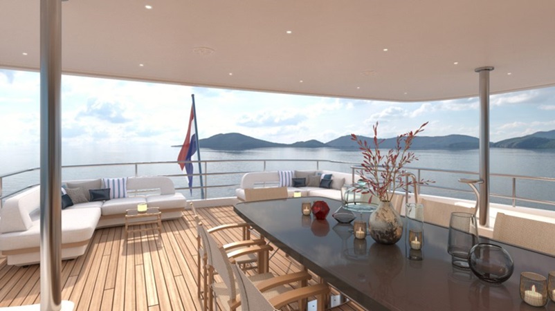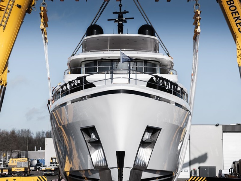 The hull of YN203 which is the 5th hull in the Moonen Martinique model has had its hull turned recently. This clears the way for the superstructure to be fitted. The hull was built and turned at another facility which is the first time an in-build Martinique hull was not built and turned at the Moonen facility. The fifth hull is a bit larger than previous sisters and was sold this year to the new owners. The vessel should be completed in 2024.