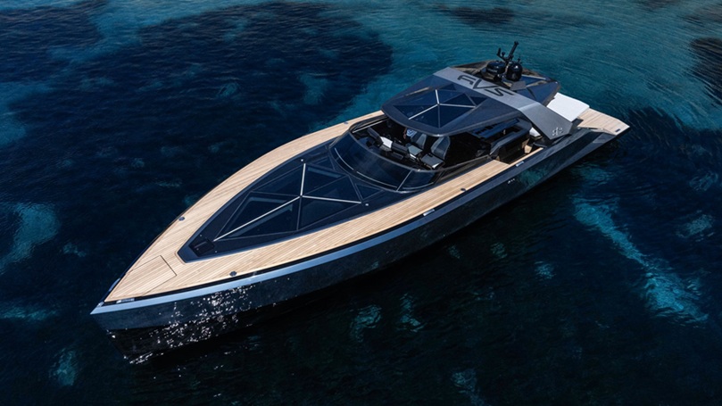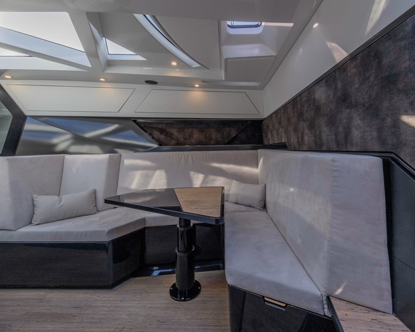 2. The vision was clearly to create a supercar destined for the water. In fact, this was the idea from Karl Wagner, the Chief Technical Officer. Taking cues from the aviation and high-end automotive world, the build is not only mostly from carbon fiber but the types of shapes and angles solidify an aggressive yet, refined look both on the exterior and the interior. You can see those shapes being echoed throughout the interior on the SAY 52.
