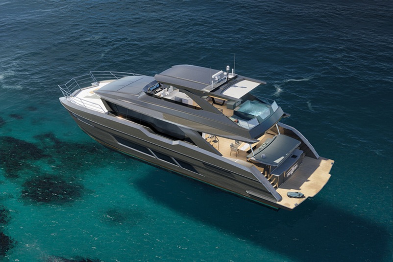 4. The yacht features a 7.6-meter beam and has all the zones you would expect on a monohull at this length. Aft cockpit, flybridge, foredeck lounging and even a jacuzzi. As previously mentioned, the XF80 model has been optimized to be offered in multiple configurations. The model can suit the Sports Sedan, Open and Enclosed Flybridge variants as well as a Helideck variant for the further adventurous owner as has been seen on the XF75.