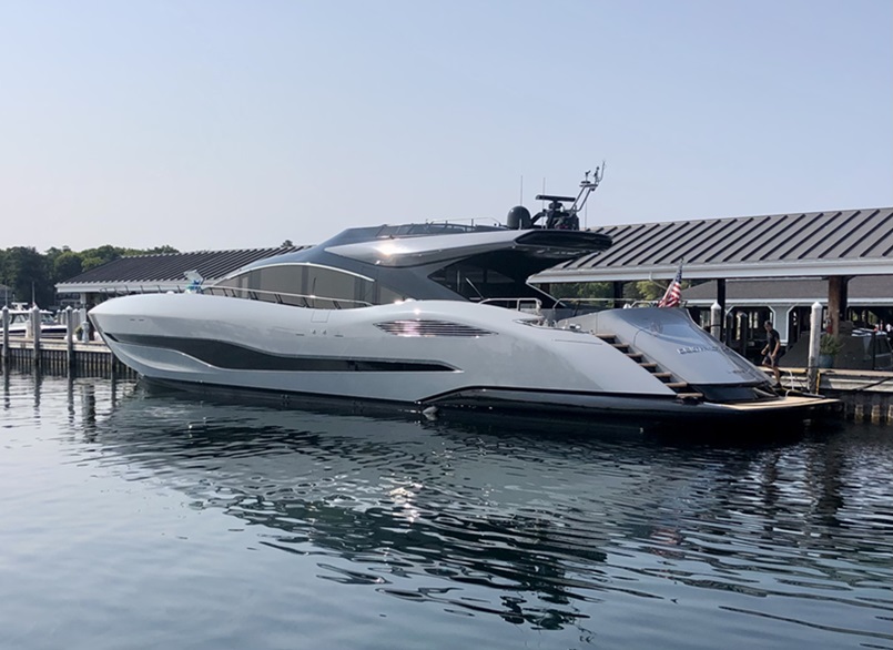 I spotted DELTA VICTOR in Harbor Springs, Michigan today. Definitely eye catching among the Tiaras and Boston Whalers. MOD EDIT: Image resized