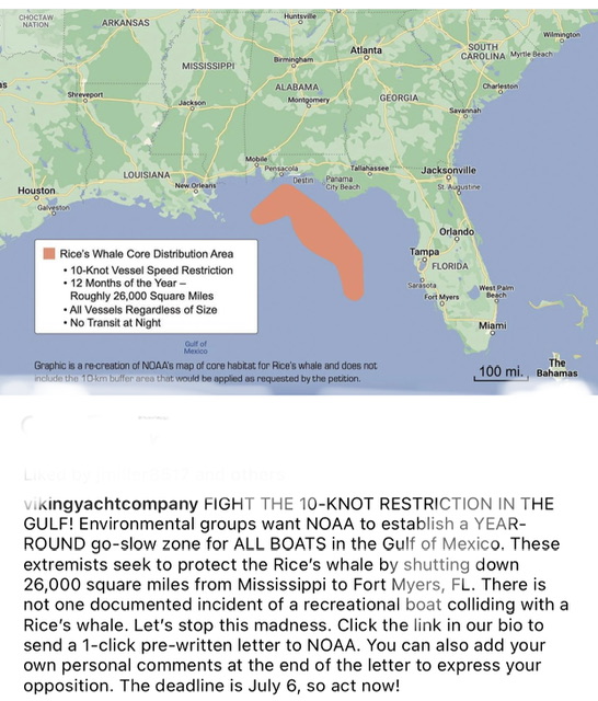 We sport fished that area for many years mostly South of Pensacola out to about 90 miles. We rarely saw a whale and thought it was a treat to see one. I haven't heard of a boat hitting any whales. There are shipping lanes in that area of the Gulf. Probably the biggest threat. This will not be popular for the sportfish community. Heard some talk about wind generators closer to shore which is a stupid eyesore and a hazard to navigation.