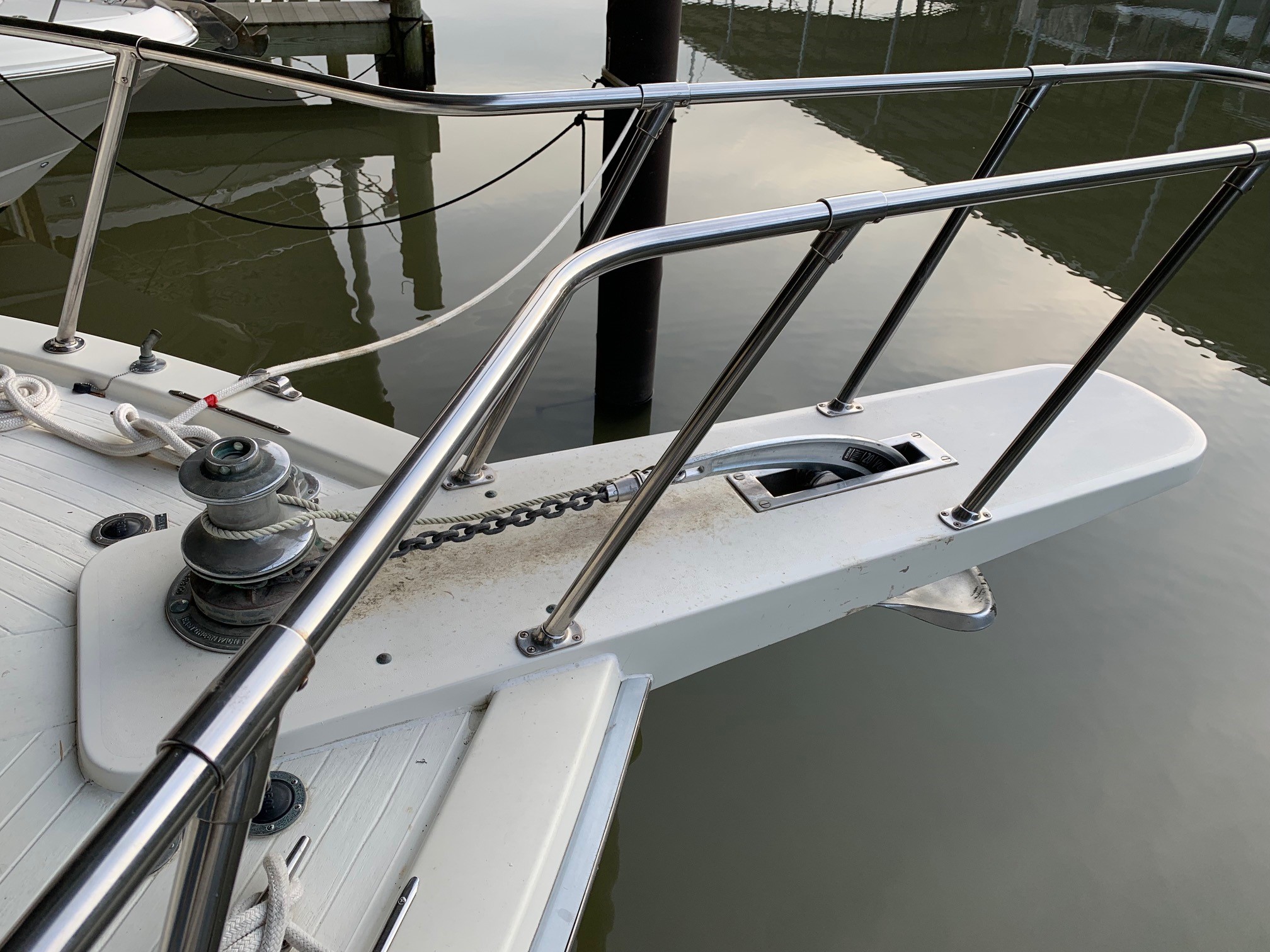 gr8trn. How do you like the Mantus bridle. I bought a medium bridle with 5/16 hook but have never used it. It is pretty good sized and I have the same pulpit as Viking44MY. I haven’t been able to figure out how to deploy with my anchor and chain having the roller in the middle of the pulpit as you can see from the pictures above. Does your ride go over a roller at the end of the pulpit?
