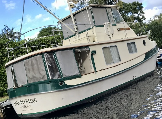 This aesthetically offensive thing just pulled in here at Compass Cay. Interestingly it was rolling back and forth like crazy while maneuvering. Extra 86