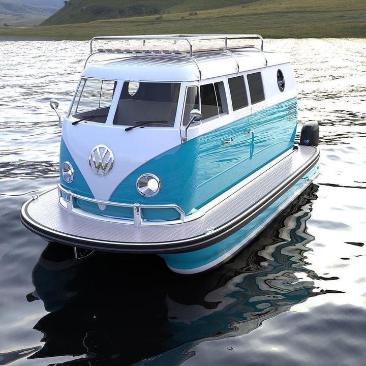 a VW bus afloat....seems about right after many tokes.....a few Grateful Dead stickers instead of boat stickers and smoke wafting from the numerous windows....Peace :)