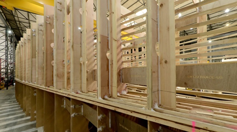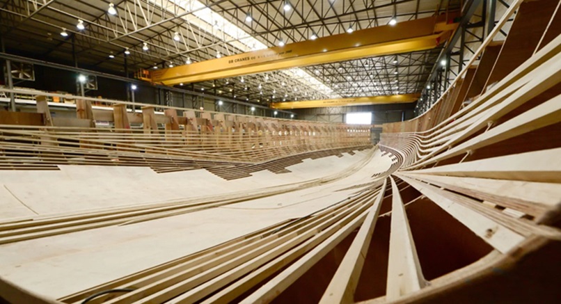 For the hull the construction is an advanced composite sandwich that comprises of an Inner skin: Carbon /epoxy resin, the Core is Corecell and the Outer skin being Carbon /epoxy resin. The deck is the same construction while the interior is going to be Honeycomb or foam sandwich structure with wooden veneers.