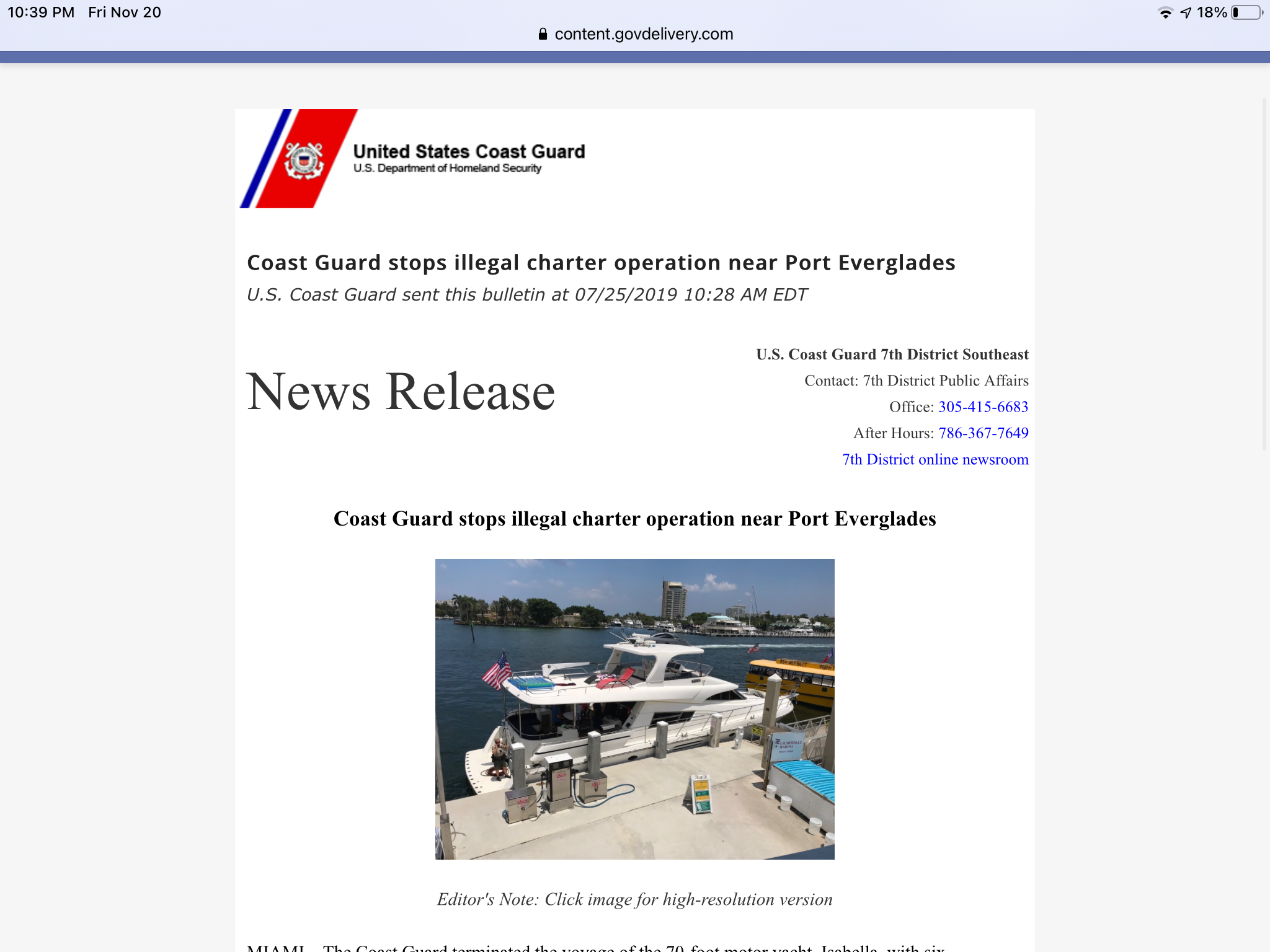while not a charter, There was an interesting exchange on 16 between one of the tour boats calling “any law enforcement” requesting help with three passengers fighting... initially Sector Miami, with USCG station just a mile away didn’t seem to care telling the captain to call FWC. Eventually they dispatched a small boat.