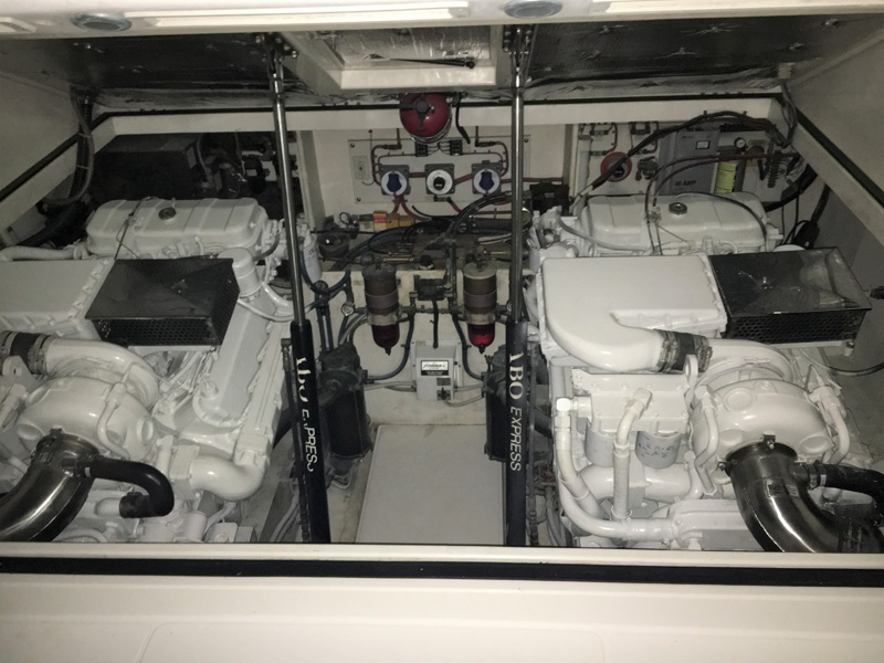 My previous Cabo was a 1996 35' Express. As I recall the engine room ventilation was set up to pull air in under the aft end of the cockpit deck across the engines and out the the hull plenums. You can see the intake screens across the aft end of the helm deck lip between the deck lights the when you raise the helm deck up on the hydraulics.