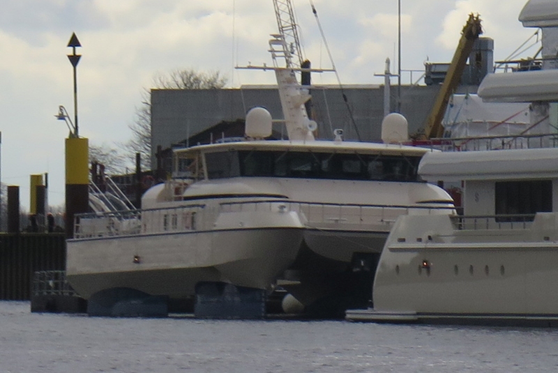 The final name for the 25 meter SWATH will be AL MAKHER. Data: 25 meter length x 13 meter width x 2,8 meter draft. Flag: Oman, IMO 9765342, Callsign A4JJ, NMSI 461009000. The "boat" will be a tender/shadow of the Royal yacht Squadron of Oman.