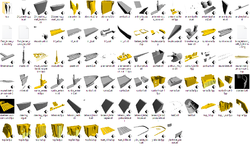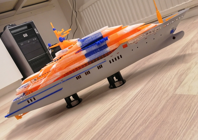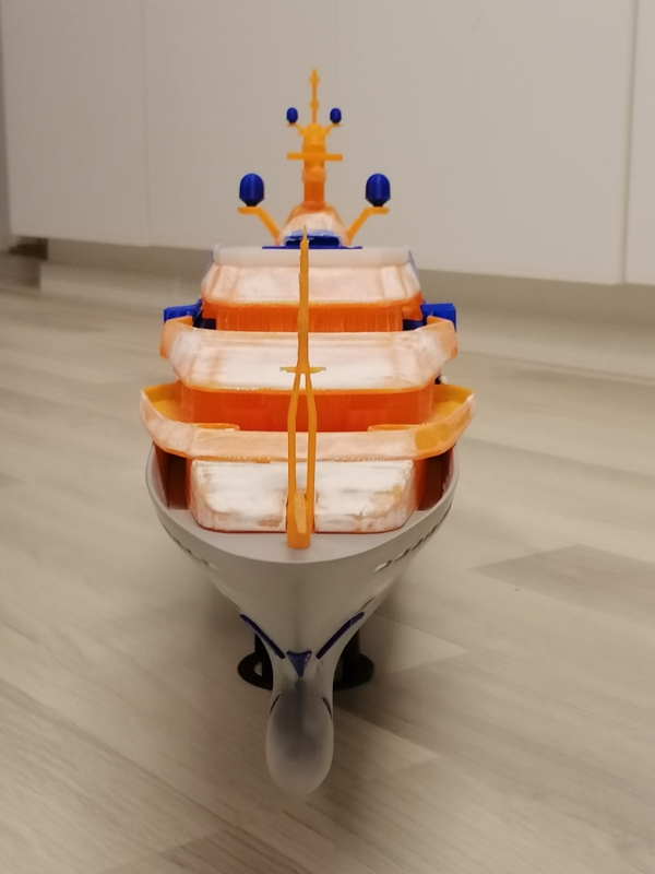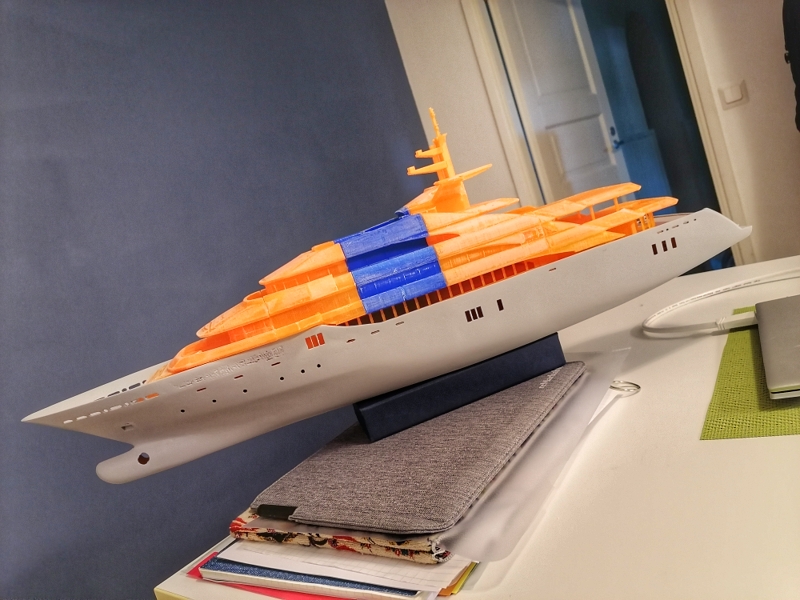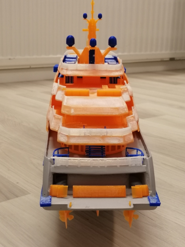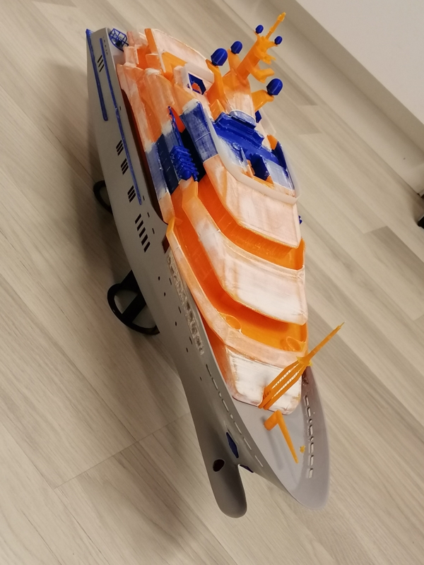 Hello Yes, every single part is printed in 3d. The files are a huge mess. Back when i did model this i was not thinking that one day i might print it out. So i had to cut and combine lots of parts and see how it turned out. When the priming and filling is done, ill paint it. My printers details are not so fine so i had to make also some changes to the smallest parts. Also the wood deck seems to be impossible to add. Thats why i'm planning to just paint it in white. Maybe later ill find a better way to do the deck,