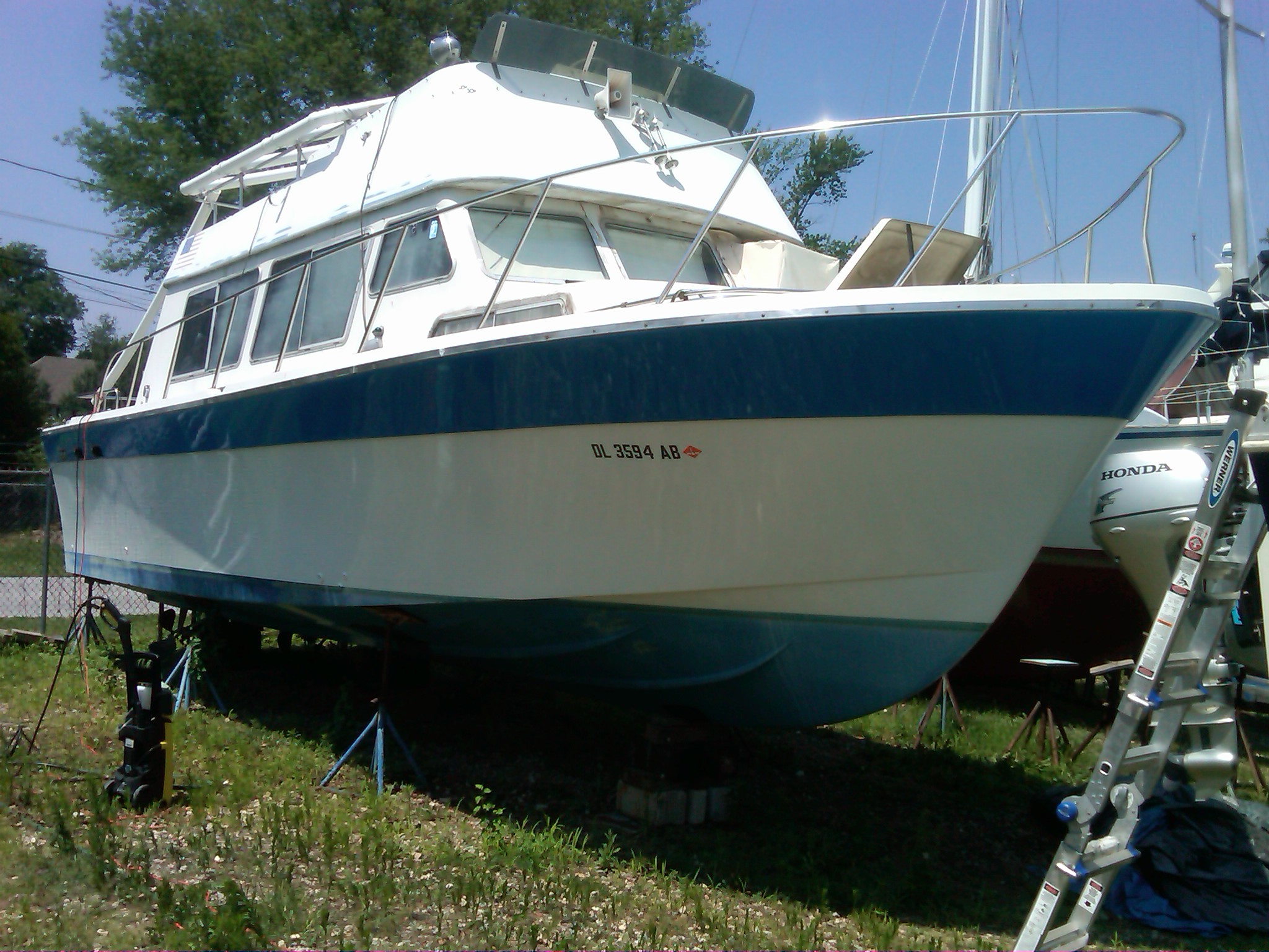 The picture is a bit old, but this is Free Will just a couple years before I inherited her from my dad. She's a 1973 32' Luhrs Sedan. Dad was the second owner. I lived aboard for a couple years then had to put her on the hard for the last several due to work. She's mostly original, though we've done a few projects (biggest ones were new AC wiring and a hull restore/barrier coat). We're planning to start the slow process of getting her back on the water now that my husband and I are both retired. Free Will - Resize.jpg