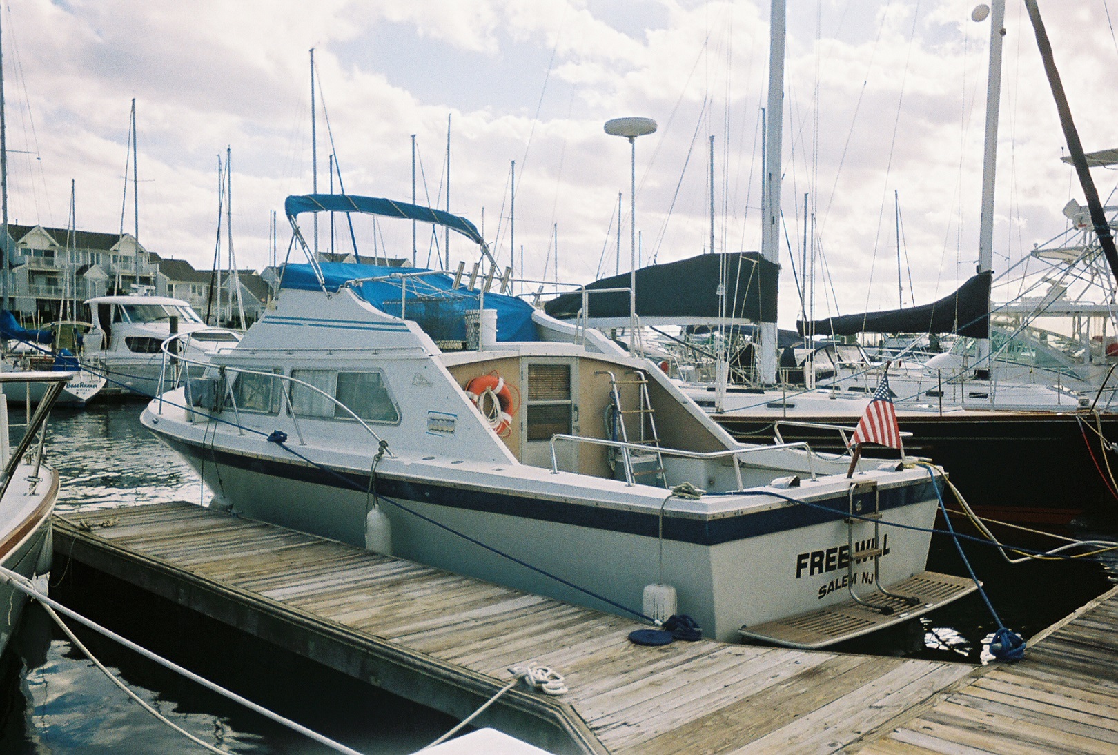Wow, great first post and great family boat history. Welcome to YF. That looks like I think it's called the Delaware City marina. Stayed there with the 56 Hatteras. Fun spinning her around there in the morning.:D Think we had about 2 extra feet. lol. Nice people there and a good sub shop a few blocks away if I remember correctly.