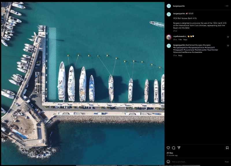 Dilbar berth number 'A18' in Port Vauban sold according to well-established brokering company that represented the buyer and the seller.