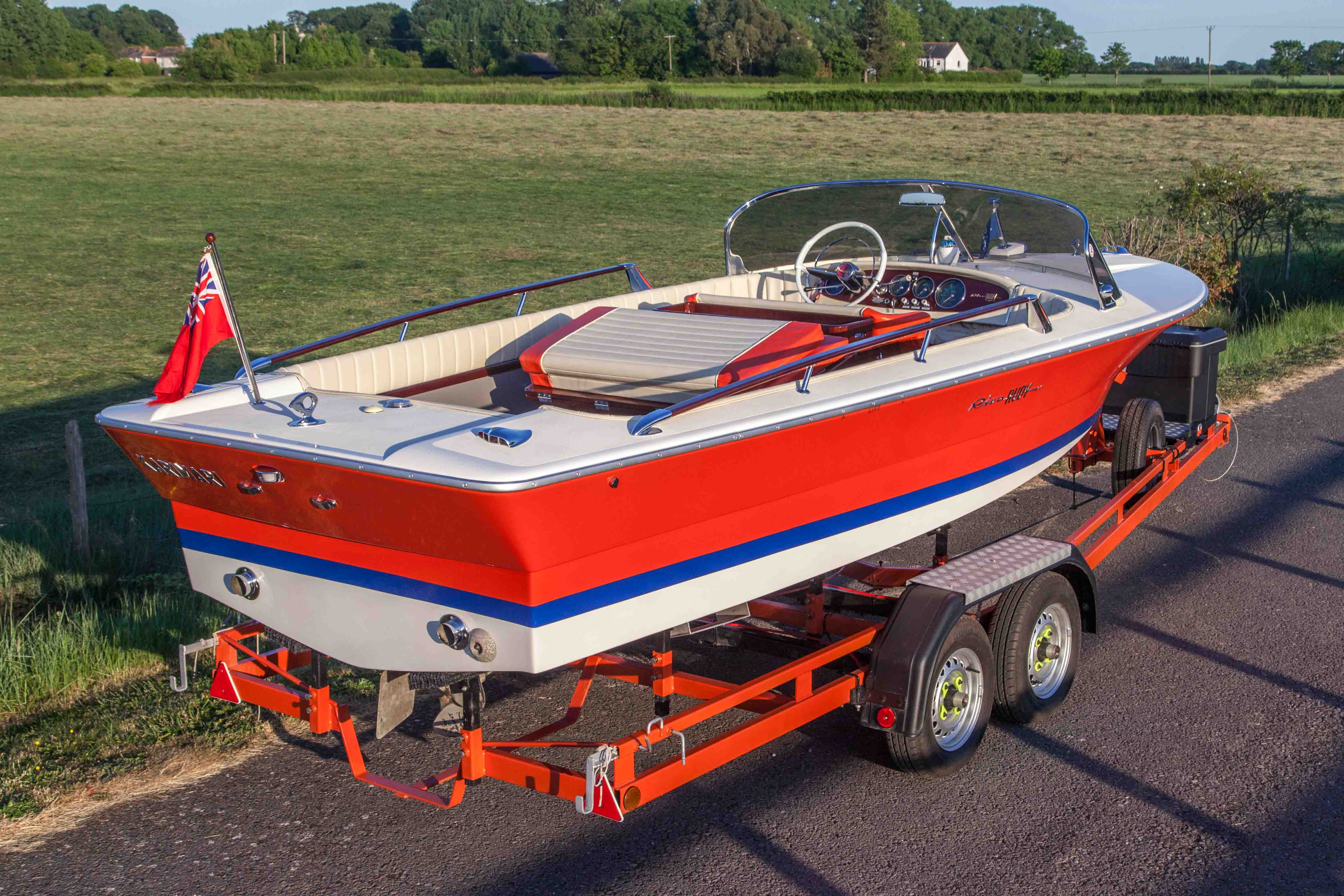 Hi everybody. Thank you for the replies and interest, we are fascinated to hear a bit of the history about Mr K, Khalidia and the crew. I have uploaded a photo of the Riva, the outside colour scheme is the same but had a white interior as Fishtigua states, the red was added to the interior as it was restored. John, who owns the Riva, spoke to Andy Judge today, a marine engineer based in the UK near Portsmouth. Andy recalls the followings in his phone calls with Mr K. The Riva Andy sold to John was one of two Rivas used on Khalidia, there was also Don Shead aluminium 25-footer and a 30 foot Cigarette, Andy does not know about any other tenders that may have been onboard. When Andy purchased the Don Shead designed, Enfield Marine built aluminium boat from Mr K, it had Tender to Khalidia painted on the wooden cradle it arrived on. The boat was built in 1972 and delivered in 1973, hull no 010 with Volvo drives and a unique looking transom. The specification as he remembers was for a boat up to 25 feet, under 3 tons that could carry 9 people at 60mph. A green deck with polished aluminium hull, white upholstery with green piping, and as Mr K said, a keyhole shaped door to allow the ladies easy access. Mr K told Andy he was selling the boat because it was too hot inside, unreliable and not as fast as he wanted. Andy called it 7UP and raced it in the UK for a while then sold it. The Riva did not come direct from Mr K, Andy found it years later in a yard for sale with the intention of restoring it, but after years passed it on to John. Spike62, Andy has not seen your photo, John described it to him and he said it does sound a very similar to his Don Shead boat except the colour scheme, so he would be interested if you do find any more photos. If you find any with the Playboy girls on it you mention in your 2009 post, all the better, ha ha. Any photos you or anyone else finds would be much appreciated, bunny girls or not. Look forward to hearing from any of you. Regards. Craig.