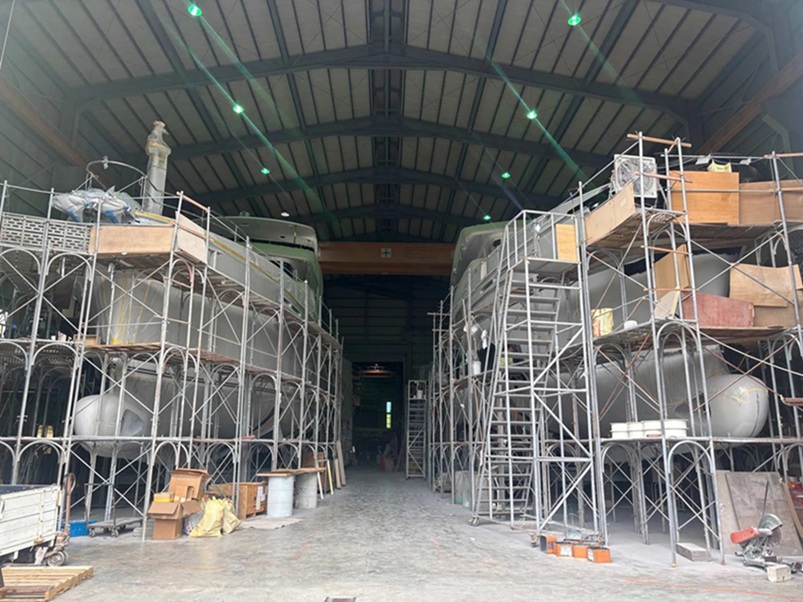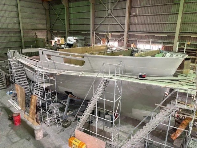 2. According to Nordhavn, the Ta Shing Yachts yard in Taiwan have hulls 7105, 7106, 7107 and 7108 in different phases of work. Hull 7105 is the most finished with an expected launch in January 2026. However, 7105 has a client already and will be shipped to Nordhavn headquarters in Dana Point, CA for final commissioning and delivery. Hull 7106 is available for purchase at this stage. If a client were to step in now they would be able to have her cruising for Summer into Fall 2026 as this yacht is anticipated to launch in June 2026. Below is a view of hulls 7105 and 7106.