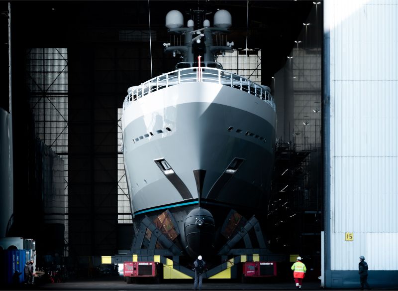 The owner's new yacht is in the process of being built and she will use it as a support ship.