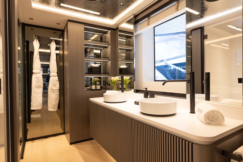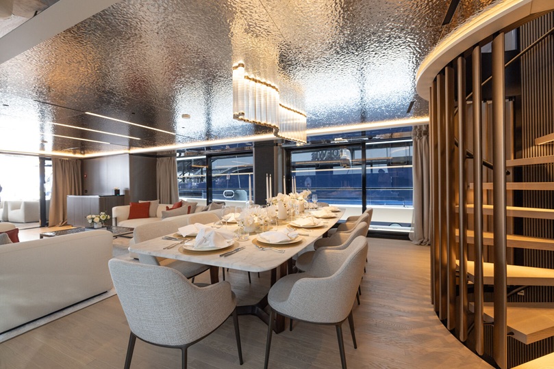 "Loewe" was at the 2025 Monaco Yacht Show (MYS). She is the second hull in the Tankoa T55 Sportiva model. Here is a look at how her main saloon turned out in reality vs the render.