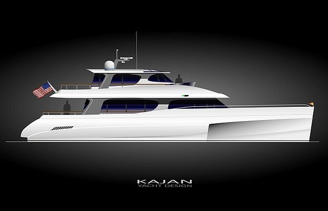 The vessels have an innovative wavepiercer displacement hull making them three times more stable than a monohull. The slender main hull increases efficiency with sponsons that have a positive effect on stability, roll dampening, speed and power. The wave piercing bow reduces pitching and will be more comfortable with no slamming as yacht goes through waves and not over them.